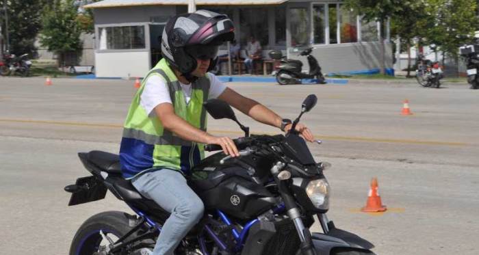 Eskişehir'de yüksek hava sıcaklığı nedeniyle terledikleri gerekçesiyle ekipmanlarını takmayan motosiklet sürücülerini uyaran sürücü kursu öğretmeni Halil İbrahim Hiçyılmaz, “Düşerken genelde ilk önce kafayı ya da çeneyi vuruyorsunuz ve ilk önce elimizi koyuyoruz. O açıdan kask ve eldiven çok önemli” dedi.