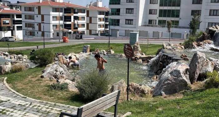 Kent genelinde etkisini gösteren sıcak havadan bunalan küçük yaştaki çocuklar, Vadişehir Mahallesi'nde bulunan Sağlık Çalışanlarına Saygı Parkı'nda bulunan süs havuzuna girdi. İçinde elektrik tesisatına giren çocukların tehlikeli serinleme yöntemi, görenleri hayrete düşürdü. Havuz kenarındaki ‘Havuza girmek tehlikeli ve yasaktır' yazısını umursamayarak tehlikeli oyunlarına devam eden çocuklar, çevredeki bir vatandaş tarafından fotoğraflandı.