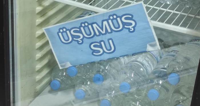 Eskişehir’de soğuk su dolabına ‘üşümüş su’ yazısını asan esnaf, yoldan geçen vatandaşların ilgisini çekti.