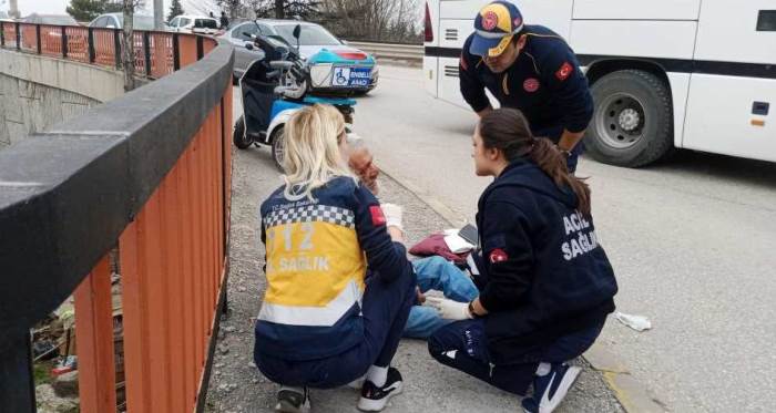 Eskişehir'de, trafikte seyir halindeyken engelli sürücüye başka bir araç çarptı. Kazada kafasını kaldırıma vuran engelli sürücü yaralandı. Ambulansa binmek istemeyen sürücü, sağlık personelleri ve çevredeki vatandaşlara zor anlar yaşattı.