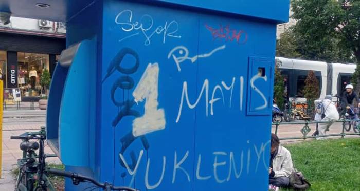 Kabinin ön yüzeyine sprey boyayla “1 Mayıs” ve “Yükleniyor” gibi ifadeler yazılırken, kenar bölümlerine de çeşitli imzalar ve karalamalar yapıldığı görülüyor. Bu durum, hem çevre düzenini bozuyor hem de Eskişehir’in kent merkezinde olumsuz bir görüntü oluşturuyor.