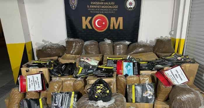Edinilen bilgiye göre, Eskişehir Cumhuriyet Başsavcılığı koordinesinde Kaçakçılık ve Organize Suçlarla Mücadele (KOM) Şube Müdürlüğü ekiplerince, halk sağlığının korunması ve haksız kazancın engellenmesi amacı ile merdiven altı diye tabir edilen yerlerde üretilen ve ülkeye yasadışı yollardan sokulan kaçak ürünleri piyasaya sürmeye çalışan şahıslara yönelik çalışma yapıldı. Gerçekleştirilen çalışmalar çerçevesinde 8 iş yeri, 2 ikamet, 2 araç ve 1 depoda yapılan aramalarda, 157 bin 500 dal sarılmış sigara, 8 bin 800 dal bandrolsüz boş makaron, bin 955 paket gümrük kaçağı sigara, bin 278 mükerrer kullanım amaçlı kesilmiş bandrol, 849 kilogram kıyılmış tütün, 590 cinsel içerikli ürün, 535 sahte alkol kiti, 471 litre sahte/kaçak alkol, 340 elektronik sigara, 311 gümrük kaçağı emtia ürün ve 23 gümrük kaçağı cep telefonu geçirildi. Ele geçirilen kaçak ürünlerin yaklaşık piyasa değerinin 3 milyon 500 bin TL olduğu öğrenildi.