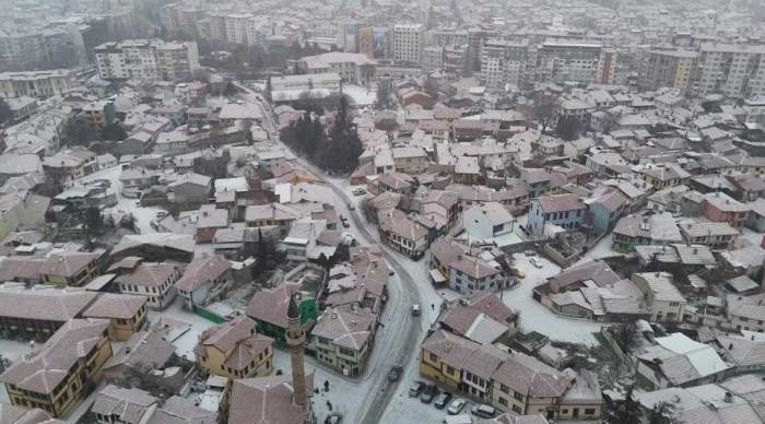 Eskişehir'de sabaha saatlerinde başlayan kar yağışı sonrası kentin büyük bir bölümü beyaz örtü ile kaplandı. Özellikle farklı renkteki Tarihi Odunpazarı Evleri'nin çatılarının beyaza bürünmüş hali kartpostallık görüntüler oluşturdu. Karın oluşturduğu hoş manzara dron ile havadan görüntülendi. Kar, vatandaşları ise kuraklığa çare olması açısında mutlu etti.
