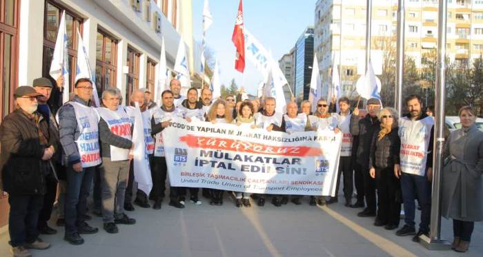 Birleşik Taşımacılık Çalışanları Sendikası (BTS) üyeleri, TCDD’de yapılan görevde yükselme sınavının iptal edilmesi ve mülakatların kaldırılması talepleriyle İstanbul’dan Ankara’ya yürüyüş başlattı.TCDD Yönetimi’nin ‘hukuksuz ve ayrımcı’ davrandığını ve bu sebeple yarın TBMM önünde protesto edeceklerini belirten üyeler, Eskişehir Tren Garı önünde “Mülakat değil liyakat istiyoruz” sloganları attı.Sendika Genel Başkanı Tonguç Özkan, “Bugüne kadar pek çok defa tanık olduğumuz bu ayrımcılığa ve hukuksuzluğa bir kez daha tanık olan bizler, mülakatlar sürecinde TCDD yöneticileri ile görüşerekgeçmiş dönemlerde yaşanan uygulamaları hatırlatarak bir daha bu tür hukuksuzluklar ve ayrımcılıklar yaşanmamasıgerektiğibelirtilmiş, kurum yöneticileri de kesin bir dille hukuksuzluğa ve ayrımcılığa neden olmayacaklarını belirtmişlerdi. Mülakat sonuçlarıyla gördük ki yine geçmiş mülakatlarda olduğu gibi kendilerine yakın sendikalarla el ele vererek göstermelik mülakatlarla yüzlerce çalışana unvanlar dağıtıldı. Günümüzde mülakatlar iktidarın kadrolaşma, yandaş sendikaların örgütlenme aracı olarak kullanılmaktadır. Bundan dolayı da mülakat uygulamaları tam anlamı ile emek hırsızlığına, gençlerin umudunu kıran, geleceğe ket vuran bir sarmal haline, adalete indirilen ölümcül bir darbe haline dönüşmüştür” ifadelerini kullandı.
