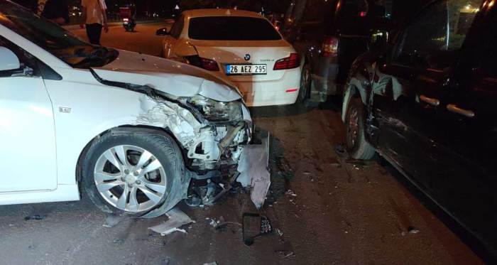 Kaza, Vişnelik Mahallesi Atatürk Bulvarı'nda saat 20.50 sıralarında meydana geldi. Edinilen bilgilere göre, Melih D. idaresindeki 33 VHE 90 plakalı otomobil, Atatürk Bulvarı üzerinde seyir halindeyken, makas atarak önce Rasim I. idaresindeki 26 ABZ 870 plakalı otomobile, ardından da Yunus D. idaresindeki 26 AEZ 295 plakalı otomobile çarptı. Çarpmanın etkisiyle 26 AEZ 295 plakalı otomobil kontrolden çıkarak park halindeki 26 SZ 225 plakalı araca çarparak durabildi.