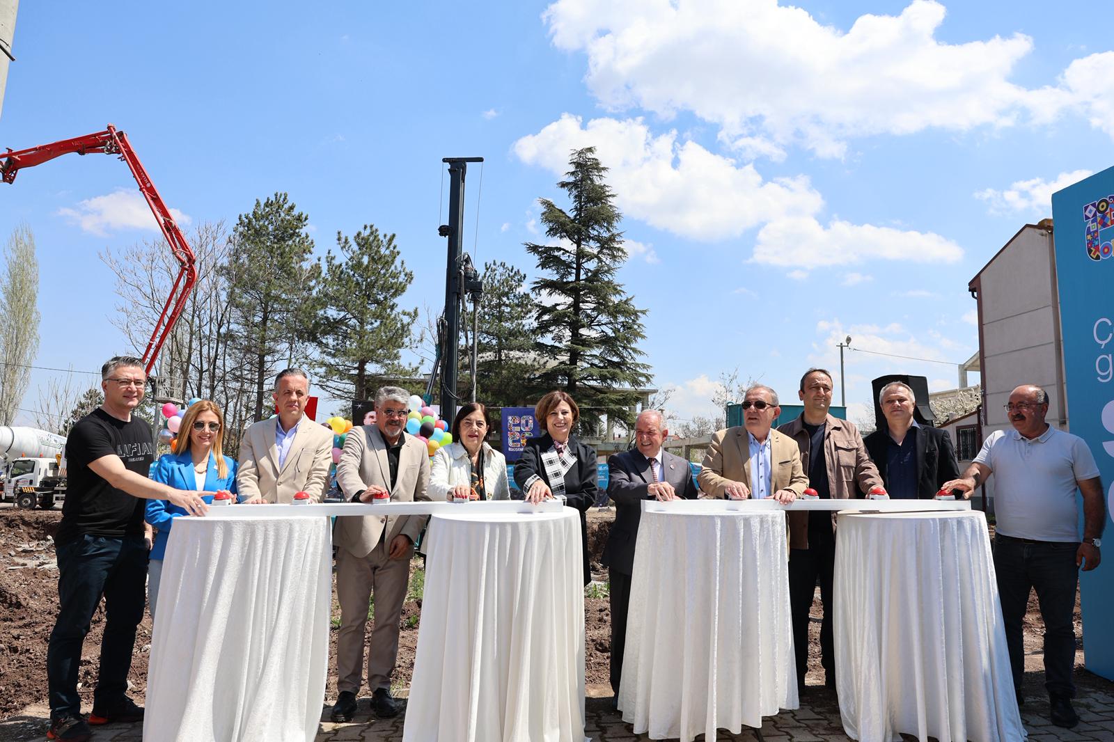Konuşmaların ardından butona basılarak Sazova Çocuk Evi’nin temeli atıldı.