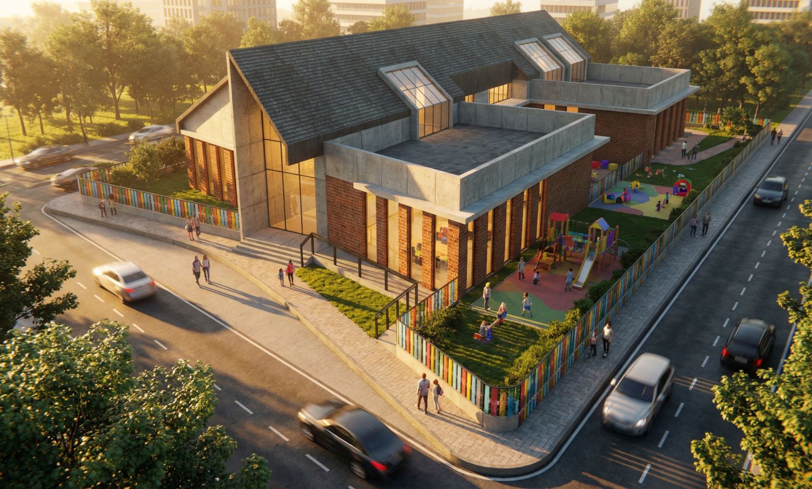 Modern mimari anlayışla tasarlanan yapı, beton, tuğla ve camın dengeli kullanımıyla estetik bir görünüm sunacak. Geniş pencere sistemleri sayesinde gün ışığından maksimum düzeyde faydalanacak olan proje, çevreci yaklaşımıyla da öne çıkıyor. Sürdürülebilir ve sağlıklı bir ortam sunması hedeflenen Sazova Çocuk Evi, tamamlandığında bölgedeki sosyal yaşamı güçlendiren önemli bir merkez olacak.