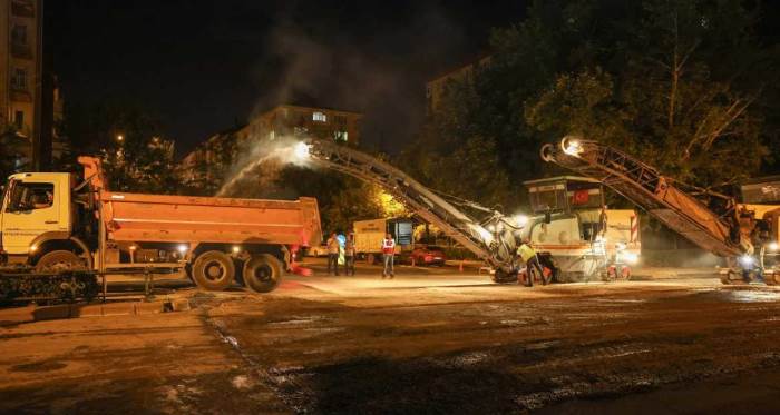Eskişehir Büyükşehir BelediyesiYol Yapım Bakım ve Onarım Dairesi Başkanlığı ekiplerinin gerçekleştirdiği gece çalışmaları aralıksız sürüyor.