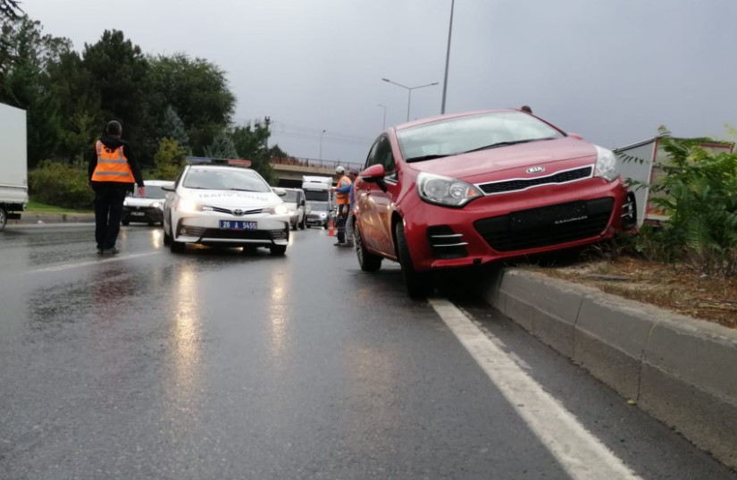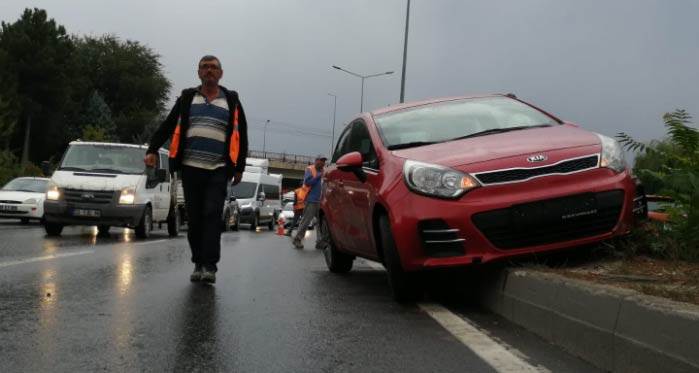 Yağış nedeniyle kayganlaşan yolda kontrolünü kaybeden 26 AGP 510 plakalı otomobil refüje çıktı.