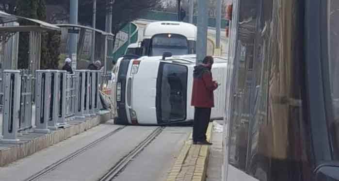 Eskişehir'de tramvay kullanacaklar dikkat! Minibüs devrilince...