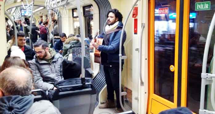 Bu genç, ucuz şöhret olma arayışı içerisinde ! Daha öncede, bizzat şahit olduğum iki arkadaş olarak tramvaya bindiler. Bindiklerinde gitarı kılıfındaydı ?Sonra kılıfından çıkarıp yüksek sesle şarkı söylemeye başladı. İnsanlar önce şaşırdı. Daha sonra gence tepki gösterdiler. Oda ilk durakta arkadaşıyla indi. Toplu taşıma aracı, ulaşım aracı. Sokak sanatı icra yeri değil