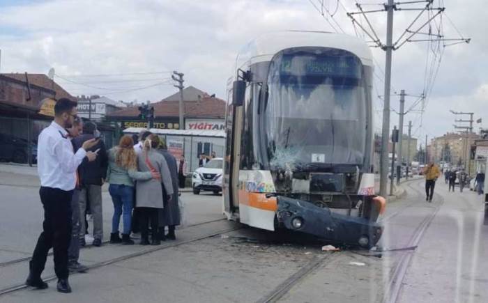 Eskişehir Ertaş Caddesi’nde bugün meydana gelen kazada bir servis aracı ile tramvay çarpıştı.