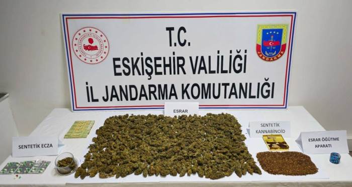 Eskişehir İl Jandarma Komutanlığı ekipleri, uyuşturucu ile mücadele kapsamında yürüttükleri çalışmalar çerçevesinde Sivrihisar ilçesinde bir şahsın uyuşturucu madde ticareti yaptığı bilgisine ulaştı. Alınan istihbarat doğrultusunda şüpheli takibe alındı. Belirlenen adrese düzenlenen operasyonda şüpheli şahsın ev ve eklentilerinde arama yapıldı. Yapılan aramalarda 769 gram esrar, 100 gram sentetik bonzai, 23 adet sentetik ecza hap, 5 paket sigara sarma kâğıdı ve 1 adet esrar öğütme aparatı ele geçirildi.