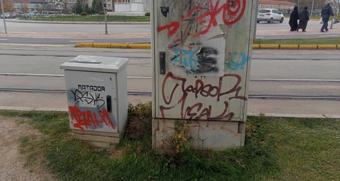 Tramvay yoluna yakın bir bölümde yer almaları, gün boyunca çok sayıda kişinin geçtiği bir noktada bu görüntünün daha görünür olmasına neden oluyor. Çevredeki yeşil alanın bakımlı olmasına rağmen pano yüzeylerinde oluşan bu görüntü, sokak düzeniyle uyumsuz bir manzara ortaya çıkarıyor. Şehir içinde zaman zaman benzer karalamalarla karşılaşılsa da, bu bölümde farklı renklerdeki sprey izlerinin üst üste birikmiş olması panoları neredeyse tamamen okunamaz hale getirmiş.