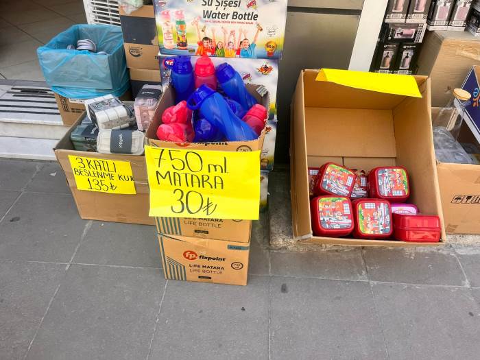 Eskişehir’de Asarcıklı Caddesi’ndeki dükkanlarda okul ihtiyaçları satışa sunuldu. 750 ml mataralar 30 liradan alıcı buldu. Eskişehir’de yeni eğitim öğretim yılının başlamasıyla birlikte okul alışverişleri hız kazandı.