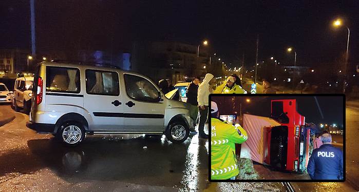 KAMYONET TERS DÖNDÜ, YOL KAPATILDI!
