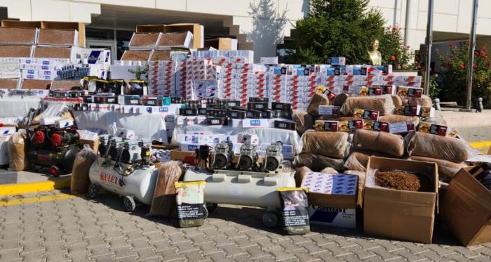 1 milyon dal boş makaron, 250 bin dal sarılmış sigara, 21 bin 600 paket gümrük kaçağı sigara, 4 bin 400 adet cinsel içerikli ürün, 510 kilogram gümrük kaçağı tütün, 330 adet elektronik sigara, 150 litre kaçak/sahte alkol, 56 adet gümrük kaçağı matkap, 30 kilogram kaçak nargile tütünü, 32 adet kaçak cep telefonu, 6 adet sigara sarma makinesi ele geçirilirken, 21 şüpheli gözaltına alındı.