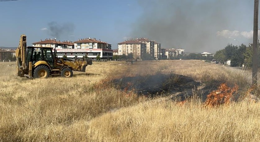 Eskişehir’de kimliği belirsiz bir kişi tarafından çıkarıldığı iddia edilen ot yangını, çevreden geçen bir kepçe operatörü tarafından söndürüldü.