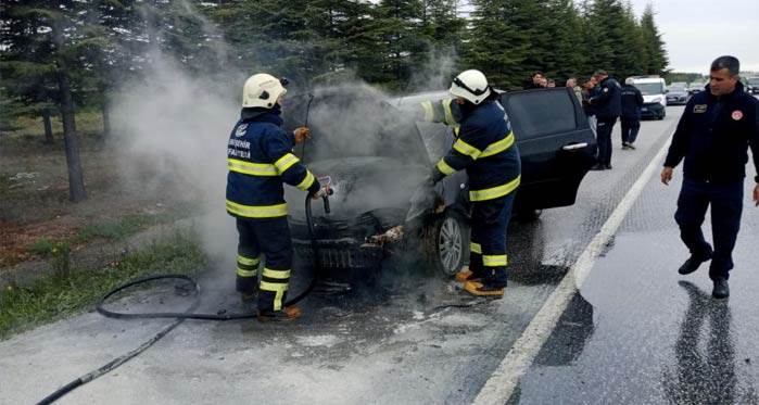Eskişehir'de seyir halindeki bir otomobilde motor aksamından kaynaklı çıktığı tahmin edilen yangın itfaiye ekiplerinin müdahalesiyle kontrol altına alındı.