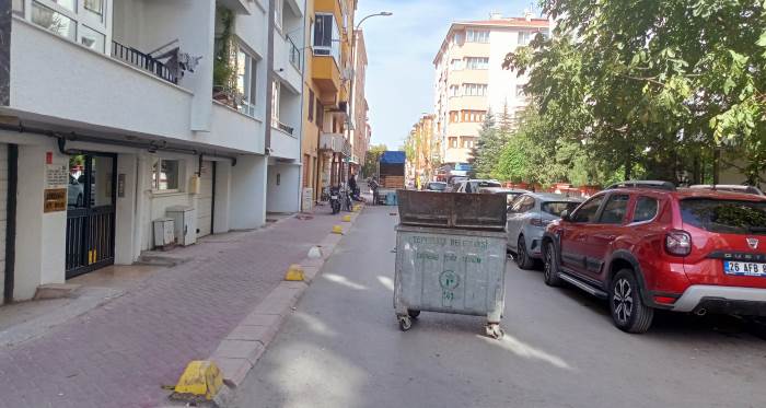 Eskişehir’in Seylap Caddesi’nde meydana gelen bir olayda, yola bırakılan bir çöp konteyneri, araç geçişlerini tamamen engelledi. Sabah saatlerinde caddeye gelen sürücüler, yolun kapalı olduğunu fark ederek şaşkınlık yaşadı.