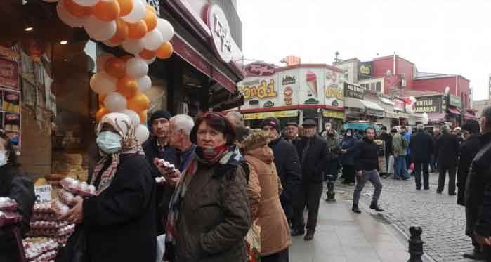 Deliklitaş Mahallesi Köprübaşı Caddesi’nde, açılışa özel ürünlerinde belirli oranlarda indirim yapan mandıra dükkânın önünde uzun kuyruk oluştu. Ucuza alışveriş yapmak isteyen vatandaşlar 40 metreyi bulan kuyrukta dakikalarca bekledi. Cuma gününe kadar geçerli olacak indirimler sebebiyle işletme önünde her gün yoğunluk oluştuğu görüldü.