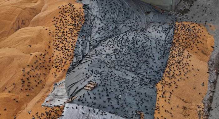 Eskişehir'de yüzlerce güvercinin istiflenen tonlarca hububat üzerine konup kalkarak karınlarını doyurma telaşı hoş manzaralar oluşturuyor. Dronla görüntülenen güvencinler nasiplerinin peşinde kanat çırparken, çevrede yaşayan vatandaşlar ise kuş pisliğinden dolayı evlerinin kirlendiğini belirterek şikayetlerini dile getiriyorlar.