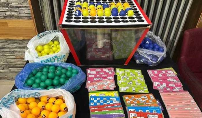 Kumar oynanan alana 3 farklı kapıdan geçilerek erişilebildiği belirlenirken, çatı katında yapılan aramada tombala makinesi, çok sayıda tombala kartı ve tombala topları ele geçirildi.