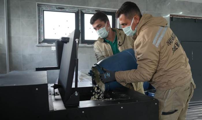Büyükşehir Belediyesi Veteriner İşleri Dairesi Başkanlığı Hayvan Bakımevi bünyesinde kurulan merkezde, hastaneler, üniversiteler ve çeşitli kurum mutfaklarından toplanan artık yemekler ve ekmekler, özel işlemlerden geçirilerek yüksek besin değerine sahip köpek mamasına dönüştürülüyor.