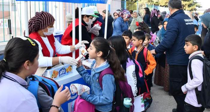 Belediye yetkilileri, beslenme desteğinin Tepebaşı bölgesinde her gün farklı bir okulda öğrencilere ulaştırılarak tüm bölgeye hizmet verileceğini kaydetti.
