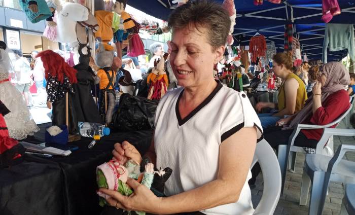 66 yaşındaki Zeliha Akbaş ise, "Emekli oldum, çocuklarımı ve torunları büyüttüm. 15 yıldır bu kurslara katılıyorum. Belediyenin bize sunmuş olduğu imkanlarla hem sosyalleşiyor, arkadaşlar ediniyoruz hem de el işlerimizi sunuyoruz. Ayrıca ufak tefek de olsa para kazanıyoruz. En azından masrafımızı çıkarıyoruz. El işi, örgü ve keçe gibi her daldan çalışma yapıyoruz. Bize 2 yıllık bir eğitim süresi veriyorlar. Kışın çalışıyoruz, yazın da satıyoruz. Çok güzel bir duygu. Torunlarımı sevindiriyorum, kızlarıma yapıyorum. Kendim örüyorum, dikiyorum ve giyiyorum. Emeklilik demek evde oturmak demek değildir. Emekli insan da çok şeyler becerebilir. Ben 10 çocuk ve torunlarımı büyüttüm. Yine de devam ediyorum" şeklinde konuştu.
