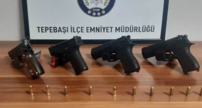 Eskişehir'de polis ekiplerince yakalanan bir şüphelinin evinde çok sayıda tabanca ve fişek ele geçirildi.