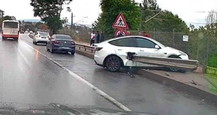 Edinilen bilgilere göre, 26 UD 110 plakalı Tesla cip, sağanak yağış nedeniyle kayganlaşan yolda kontrolden çıkarak yol kenarındaki bariyere çarptı. Çarpmanın etkisiyle bariyer aracın bir tarafından girip diğer tarafından çıktı.