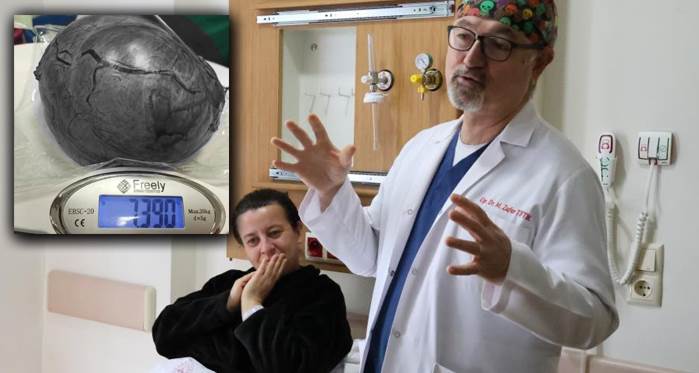 Eskişehir’de yaşayan 44 yaşındaki Gülfer Kurt, pandemi döneminde aldığı kiloları veremediği gerekçesiyle doktora gitti. Yapılan muayenelerin ardından Gülfer Kurt, adeta hayatının şokunu yaşadı. Gittiği bir dahiliye doktoru tarafından Gülfer Kurt’un batın bölgesinde büyük bir kitle tespit edildi. Eskişehir Yunus Emre Devlet Hastanesi’ne sevk edilen Kurt, Kadın Hastalıkları ve Doğum Bölümü’nde yapılan testlerin ardından 8 Aralık Cuma günü ameliyata alındı. Yaklaşık 2 saat süren operasyon sonucu Gülfer Kurt’un batın bölgesinden, 7 kilo 390 gram ağırlığında kitle çıkarıldı. Boyu 35 santimetre, çevresi ise yaklaşık 85 santimetre gelen kitle, operasyonu gerçekleştiren doktorlar dahil bütün herkesi şok etti.