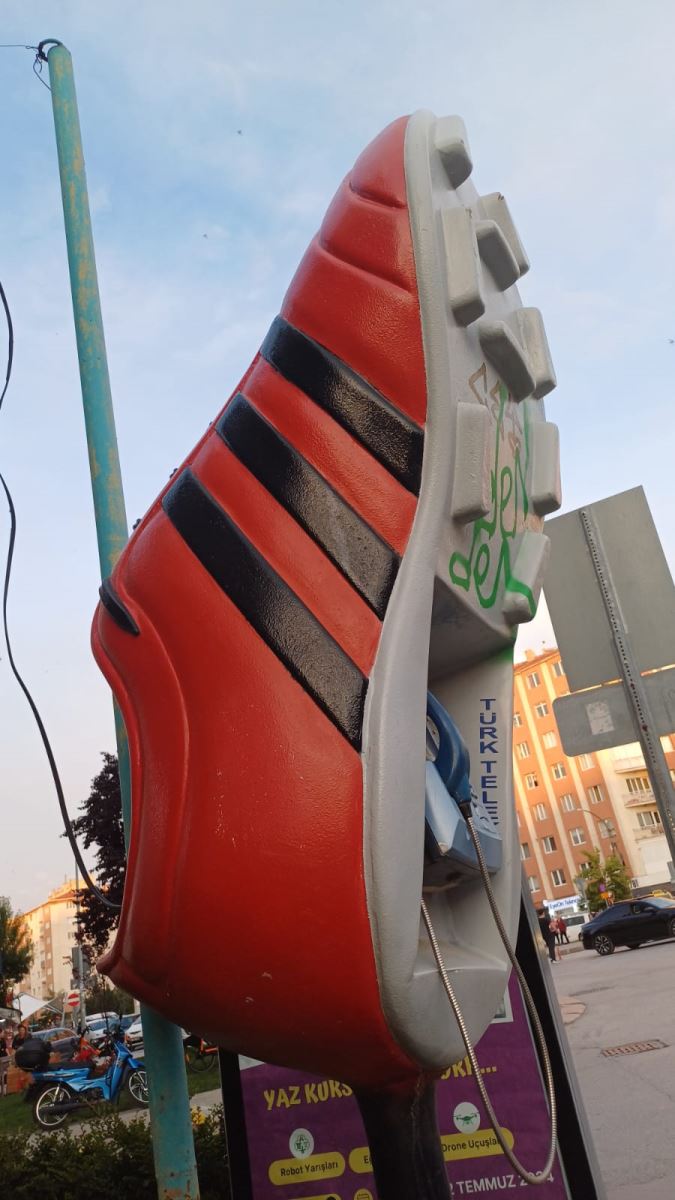 Eskişehir Tepebaşı ilçesinin Yenibağlar semtinde bulunan bir ankesörlü telefon ilginç ve sanatsal tasarımıyla ilgi odağı oldu. Eskişehir Yenibağlar mahallesinde bir ankesörlü telefonun bulunduğu tasarım görenlerin hem beğenisini hem de ilgisini kazandı. Spor ayakkabı tasarımı ve Eskişehirspor'un Kırmızı Siyah renkleriyle dikkat çeken bu ankesörlü telefon kutusunu gören Eskişehirliler, gördükleri hoş ve farklı detayın fotoğrafını çektiler.