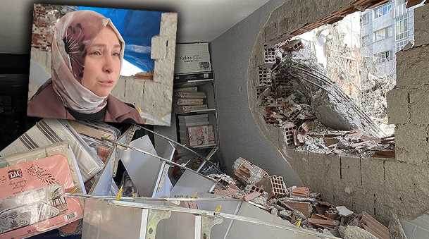 Yıkım sırasında bitişik binadaki çeyiz dükkanı ağır hasar aldı. İş yeri sahibi Kübra Ceylan, gözyaşları içinde yaklaşık 1,5-2 milyon liralık zararı olduğunu belirterek yetkililerden destek istedi.