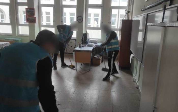 Eskişehir'de 'Kamuya Yararlı Bir İşte Ücretsiz Çalışma Yükümlülüğü' kapsamında, İsmet İnönü İlkokulu'nda yükümlüler tarafından temizlik çalışması gerçekleştirdi.