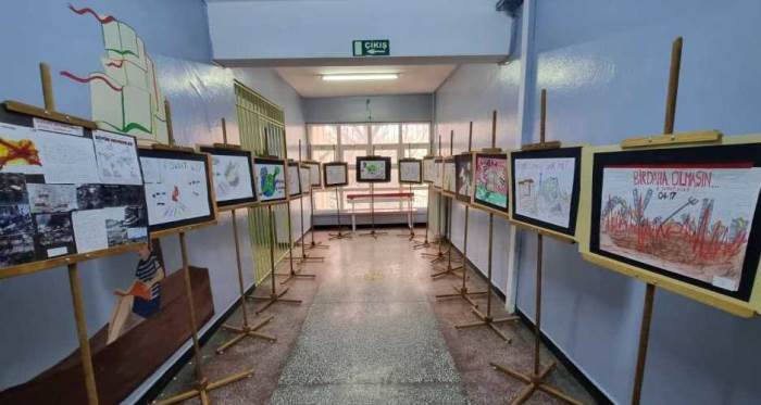 Ticaret Borsası Ortaokulu ve Ticaret Borsası İmam Hatip Ortaokulu Müdürü Oktay Turinay, serginin açılışında yaptığı konuşmasında, ''Asrın dayanışmasının yaşandığı büyük afette vefat eden yurttaşlarımıza Allah'tan rahmet, yaralılarımıza da acil şifalar, yakınlarını kaybedenlere de sabır diliyorum. Okulumuz öğrencileri, velileri ve öğretmenleri olarak depremin olduğu ilk andan itibaren farklı şekillerde sahada olduk. Depremin yıl dönümü münasebeti sebebiyle hazırladığımız programa saygı duruşu ile başladık. Vefat eden vatandaşlarımız için okunan Kur'an-ı Kerim tilavetinin ardından deprem anında ve sonrasında alınacak tedbirler ile ilgili videoları öğrencilerimize izlettirdik. 6 Şubat depremine istinaden bir konuşma gerçekleştirdim. Daha sonra öğrencilerimiz arasında hazırlanan resim yarışmasında dereceye giren eserler, okulumuzun Sergi Köşesi'nde sergilendi. Sergimiz; öğretmenlerimiz, öğrencilerimiz ve velilerimizin ziyaretine açıktır. Sergi köşemizi hazırlayan görsel sanatlar öğretmenimizi ve emeği geçen tüm öğrencilerimiz tebrik ediyorum’’ dedi.
