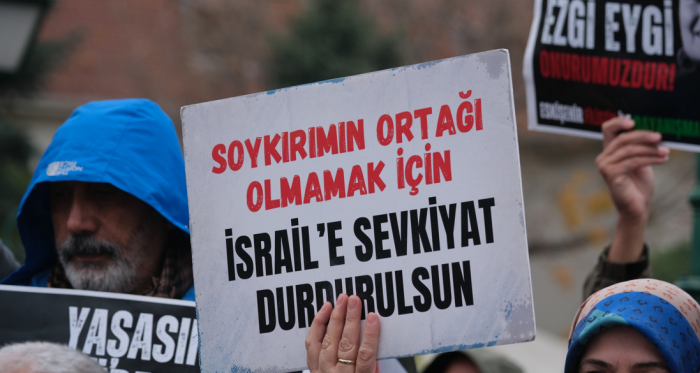 Trump’ın “Yüzyılın Anlaşması” olarak sunduğu planın, gerçekte Filistin’i yok etmeyi amaçladığına vurgu yapan Sarı, “Filistin mücadelesi sadece bir coğrafyanın değil, tüm insanlığın özgürlük mücadelesidir. Uluslararası hukuk mekanizmalarının ve Batı’nın ikiyüzlü demokrasi söyleminin çöktüğü açıkça ortadadır. Bu suskunluk ve destek, soykırımın siyasi ortaklığıdır. Türkiye’de ise AKP iktidarı yıllardır aynı ikiyüzlü oyunu oynamaktadır: meydanlarda Filistin retoriği, kapalı kapılarda İsrail’le ticaret, askeri işbirliği, enerji anlaşmaları… Gazze yanarken, Türkiye limanlarından İsrail’e sevkiyat devam ediyor. Enerji hatları çalışıyor. Diplomatik trafik sürüyor. Yani Filistin’in kanı akarken, ticaret ve çıkar ilişkileri hiç durmuyor. Bu sadece iki yüzlülük değil, soykırıma fiili ortaklıktır” dedi.