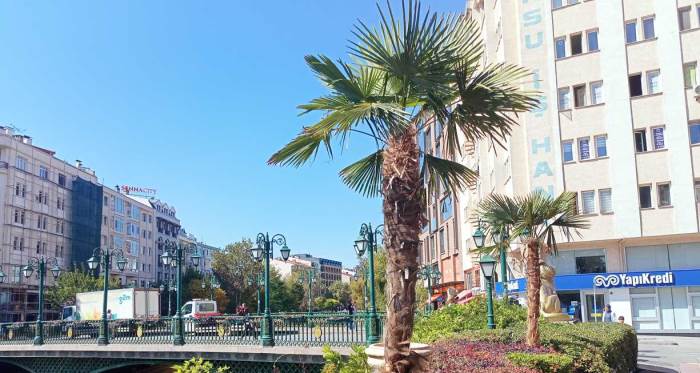 Köprübaşı, Eskişehir’in önemli buluşma noktalarından biri olduğu için her gün yüzlerce kişi bu bölgeden geçiyor. Şehrin merkezindeki bu palmiye ağaçları, yalnızca doğaya katkı sağlamakla kalmayıp, aynı zamanda insanların şehrin yoğunluğundan bir nebze uzaklaşıp kendilerini rahatlatabileceği bir alan yaratıyor. Ağaçların çevresine yerleştirilen oturma alanları da halkın kısa molalar vermesine ve bu doğal güzelliklerin tadını çıkarmasına olanak tanıyor.