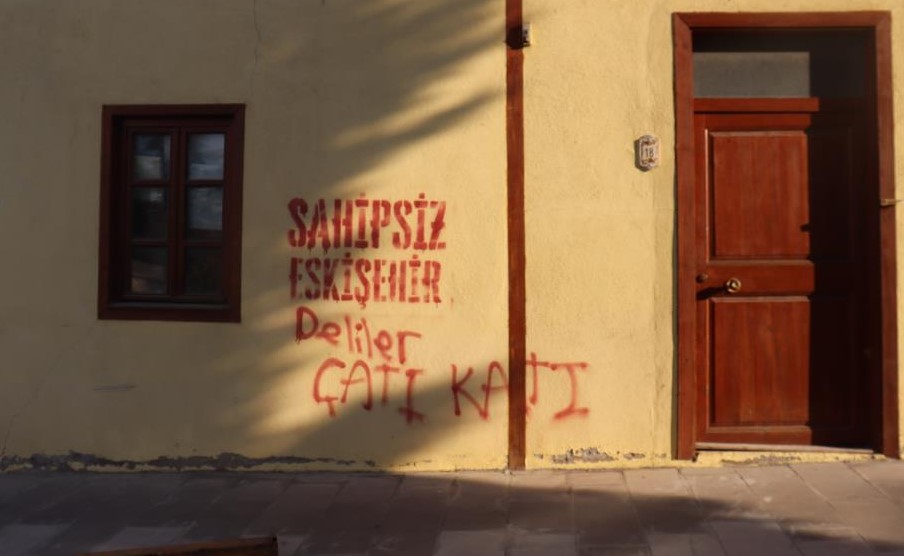 Odunpazarı İlçesinde bulunan Malhatun sokakta ki bazı tarihi evlerin duvarında ‘Sahipsiz Eskişehir' yazılarının görünmesi dikkat çekti.