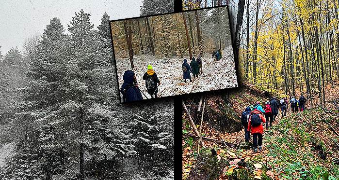 Engin Atalan ve arkadaşlarından oluşan 23 kişilik ekip 13 kilometrelik mesafeyi kat ettiler. Yürüyüş tutkunları ormanda fotoğraf çekmeyi de ihmal etmedi. Yürüyüş esnasında ekip, kar yağışına da yakalanırken, beyaz örtüyle kaplanan ormanda temiz havanın tadını çıkardı.