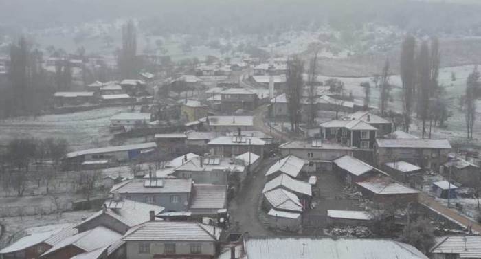 Eskişehir’in Mihalıççık ilçesinde nisan ayında etkili olan kar yağışı vatandaşları şaşırttı. İlçe kısa sürede beyaza bürünürken ortaya çıkan kartpostallık manzaralar drone ile havadan görüntülendi.