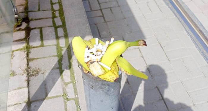 Eczacılık Tramvay Durağı çevresinde muz kabuğu ve sigara izmaritlerinin gelişi güzel bırakılması, kamusal alanda çevre kirliliğine neden oldu.