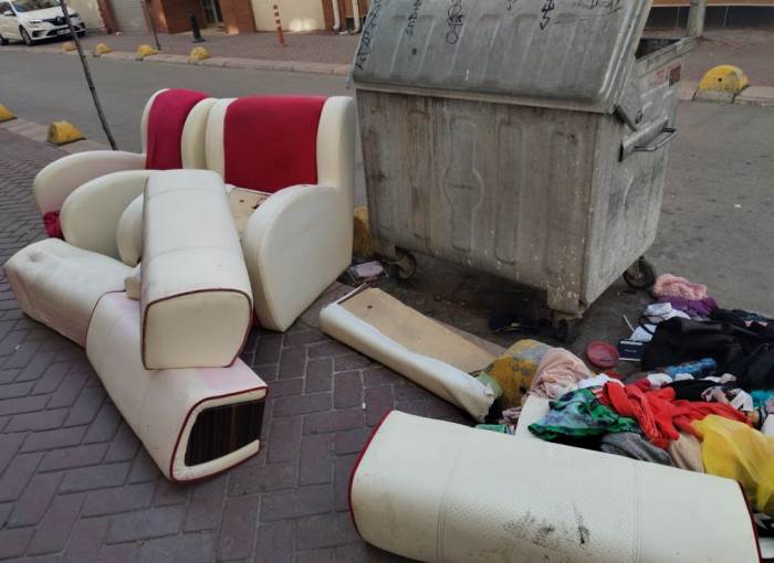 Eskişehir Collessium çevresinde bir çöp konteynerinin yanı başına bırakılan eski mobilya parçaları ve giysiler dikkat çekti. Çöp konteynerine sığmayan büyük eşyaların gelişi güzel şekilde sokaklara atılması, çevrede görüntü kirliliğine neden oluyor. Bu durum, kent estetiğini olumsuz etkilerken, atıkların toplanma süreci de zorlaşıyor.