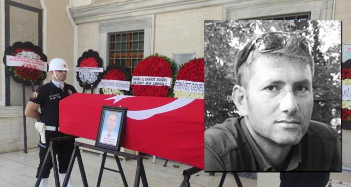 Görev yaptığı Eskişehir’de geçirdiği kalp krizi sonucu yaşamını yitiren polis memuru Savaş Aydın, Bursa’da resmi törenle son yolculuğuna uğurlandı.