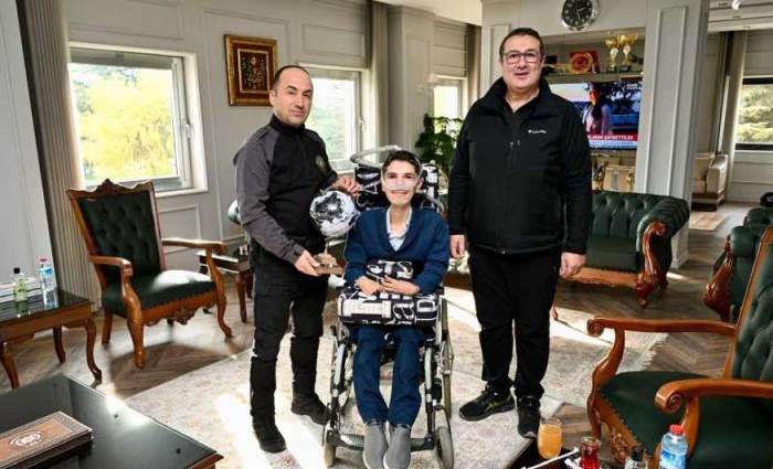 Eskişehir İl Emniyet Müdürü Tolga Yılmaz, 3 Aralık Dünya Engelliler Günü kapsamında anlamlı bir ziyaret gerçekleştirdi. Polis Memuru Hayri Saraç ve engelli oğlu Arman Saraç’ı makamında ağırlayan Yılmaz, ziyaret boyunca Arman Saraç ile yakından ilgilendi.