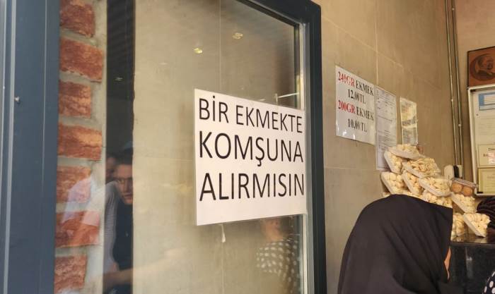 Eskişehir İstiklal Mahallesi’nde bir fırıncı, camına astığı “Bir ekmekte komşuna alır mısın?” yazısıyla dikkatleri çekti.