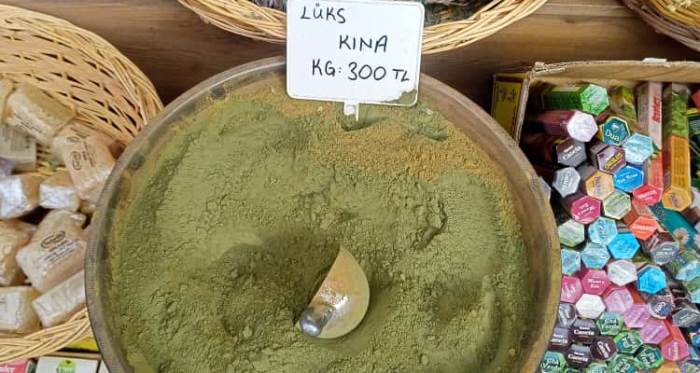 Hamamyolu Çarşısı’nda kış sezonunun yaklaşmasıyla birlikte bitkisel ürünlere ve doğal kozmetiklere ilgi artarken, kına satışları da hız kazandı. Tezgâhlarda yerini alan “lüks kına” çeşidi, kilogramı 300 liradan alıcı buluyor.