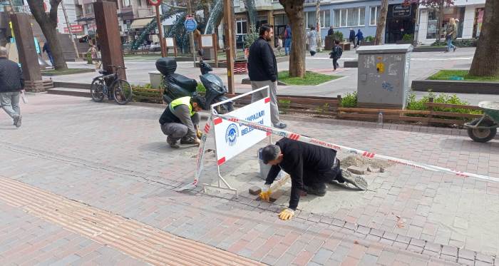 Yoğun yaya trafiğinin bulunduğu bölgede kaldırımların sökülerek yeniden düzenlendiği gözlemlendi. Çalışmalar sırasında vatandaşların alternatif güzergâhlara yönlendirildiği belirtildi.