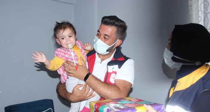 Sandıklı ilçesinden Eskişehir’e helikopter ambulansla gelirken kendisini taşıyan ATT Mehmet Canko’nun kucağından inmeyen Beril bebek iyileşerek bugünlerde annesi, babası ve ablası ile birlikte sağlığına kavuşmanın tadını çıkartıyor. Fedakar ATT Mehmet Canko ve Afyonkarahisar 112 Başhekimi Gülsüm Doğan, Beril bebeği Sandıklı ilçesindeki evlerinde ziyaret etti. ATT Mehmet Canko ve 112 Başhekimi Gülsüm Doğan, Beril beleğe bir de oyuncak hediye etti. Canko ayrıca, ATT armasını da Beril bebeğe taktı.